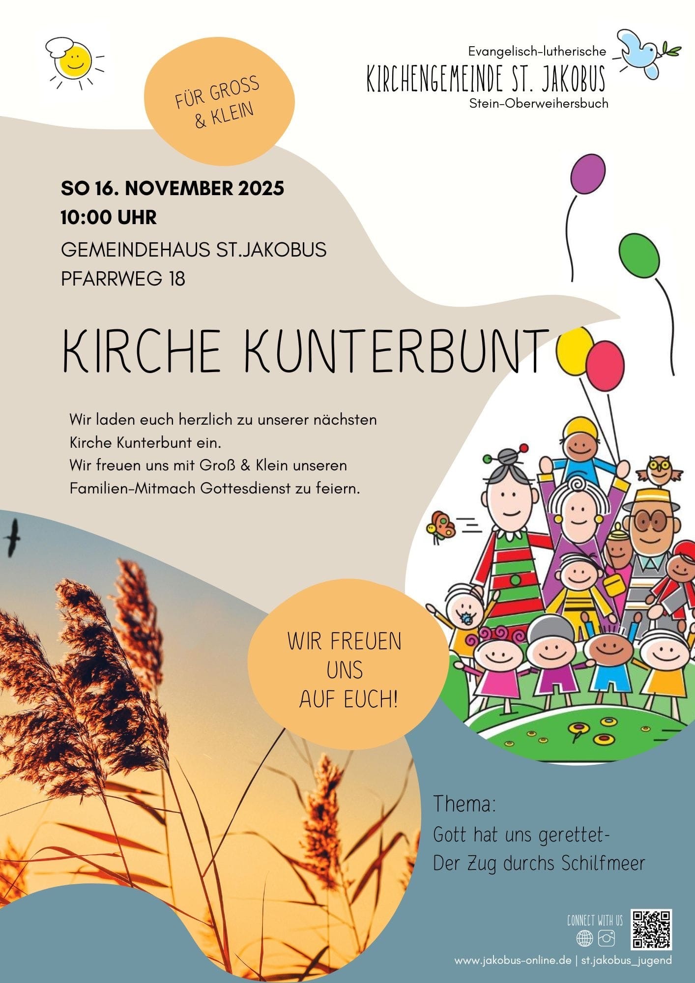 Allgemein Kirche Kunterbunt am 16. November: Gott hat uns gerettet-Zug durch das Schilfmeer Veröffentlicht am 21. Oktober 2025 von Pfrin. Winkler Kirche Kunterbunt Pfrin. Winkler Alle Beiträge von Pfrin. Winkler ansehen →